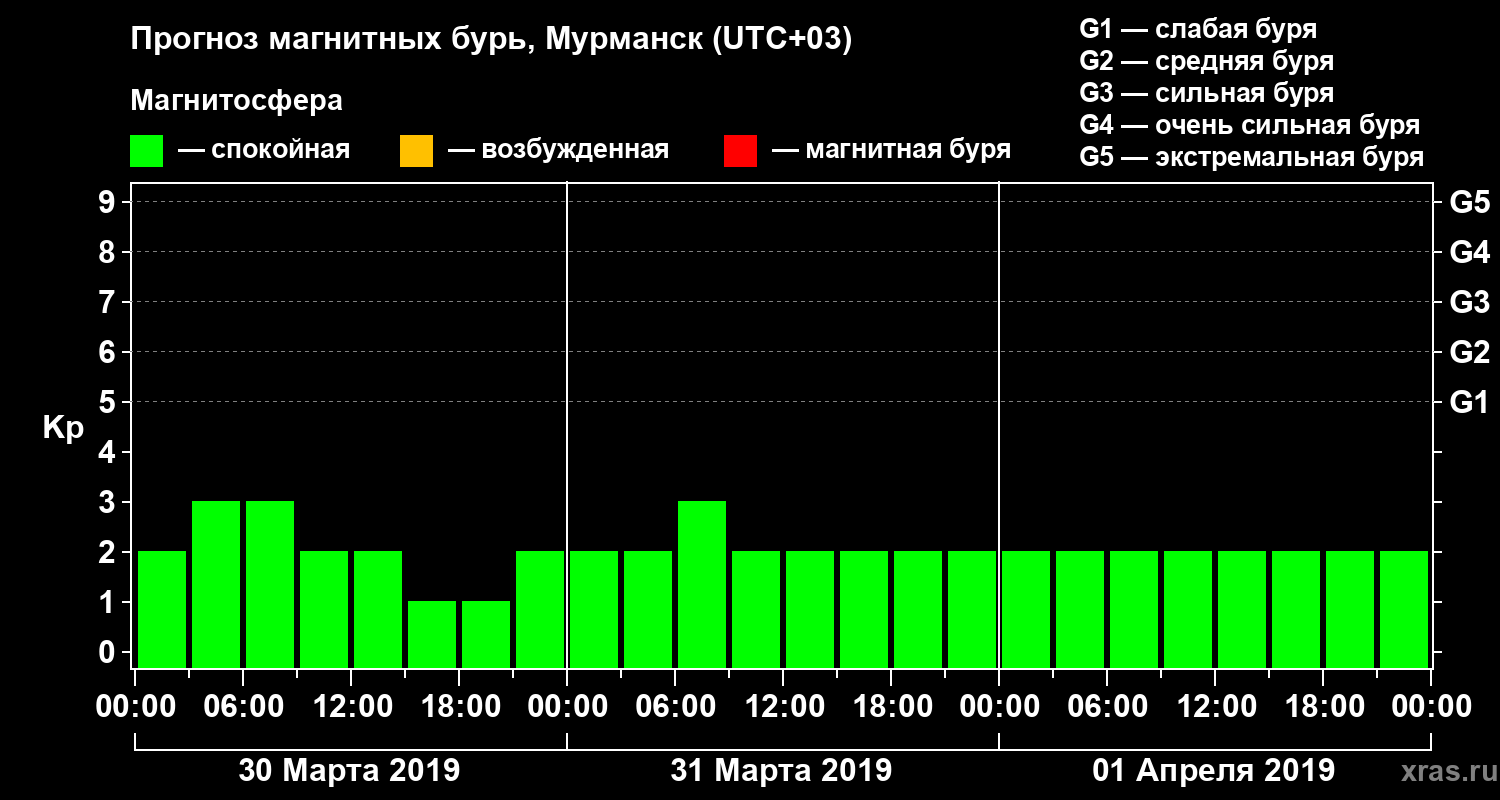 Прогноз магнитных бурь в Мурманске — 30 марта 2019 года