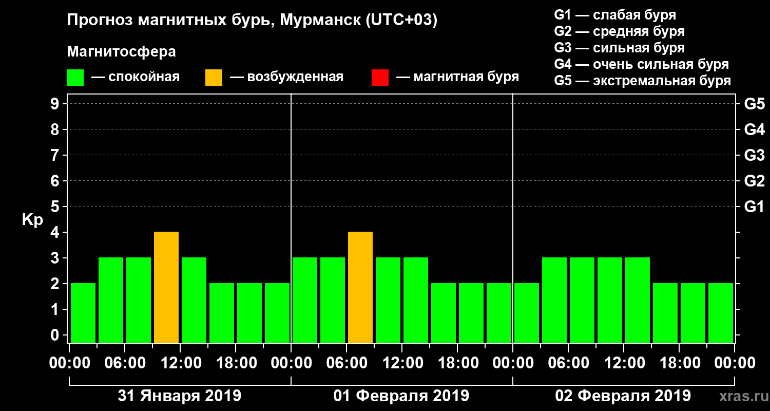 Прогноз магнитных бурь в Мурманске — 31 января 2019 года