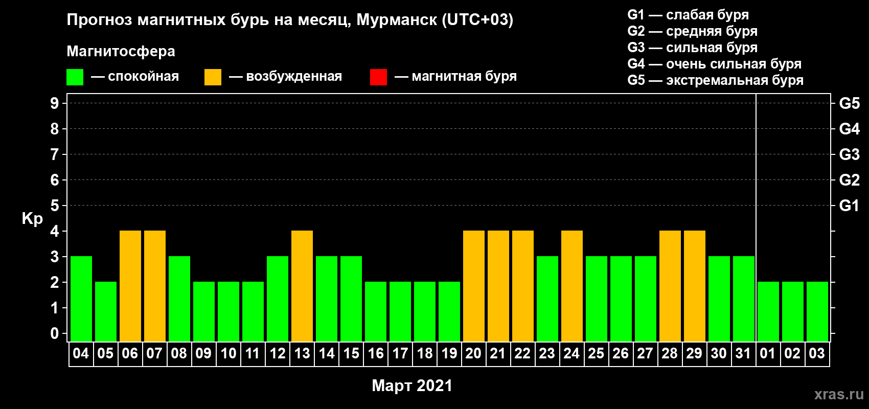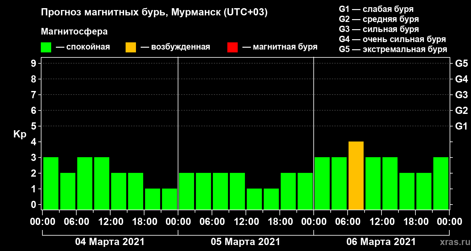 Прогноз магнитных бурь в Мурманске — 4 марта 2021 года