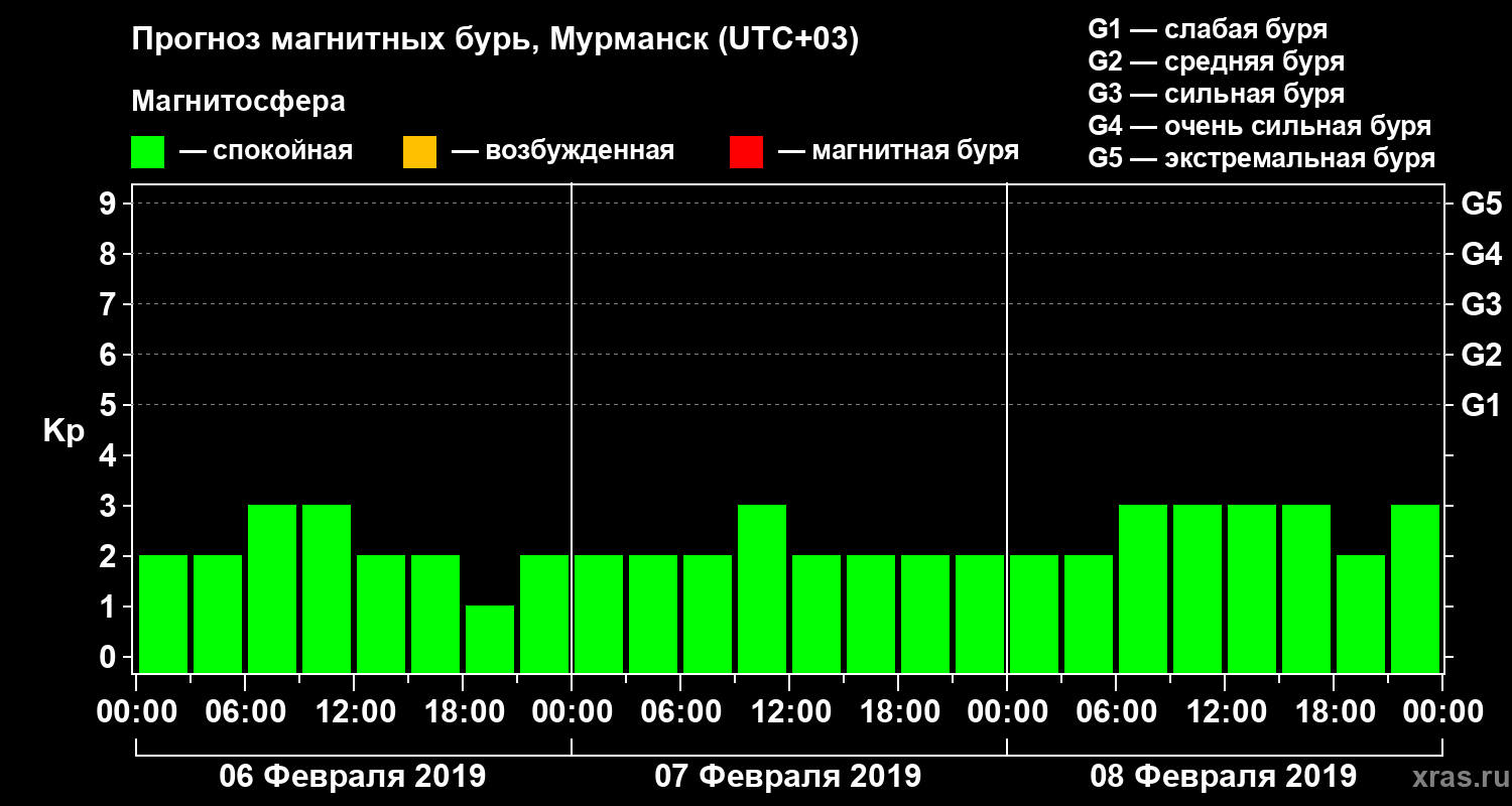 Прогноз магнитных бурь в Мурманске — 6 февраля 2019 года