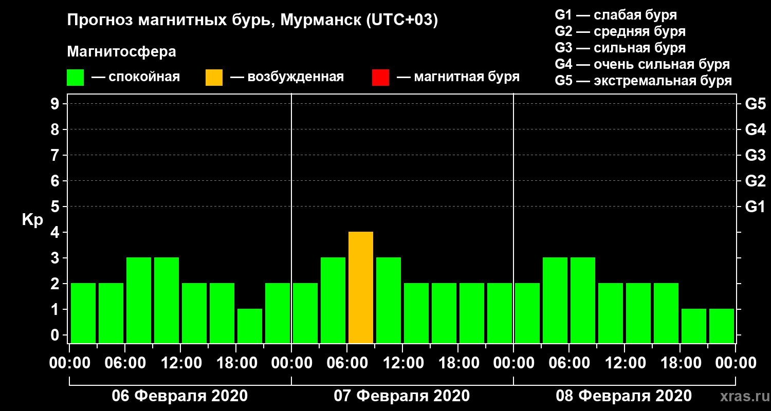 Прогноз магнитных бурь в Мурманске — 6 февраля 2020 года
