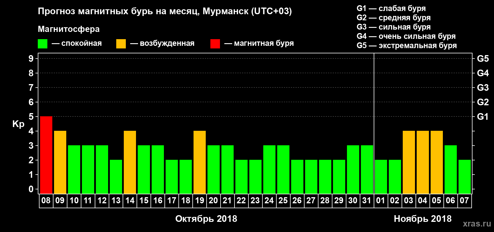 Прогноз магнитных бурь в Мурманске — 8 октября 2018 года