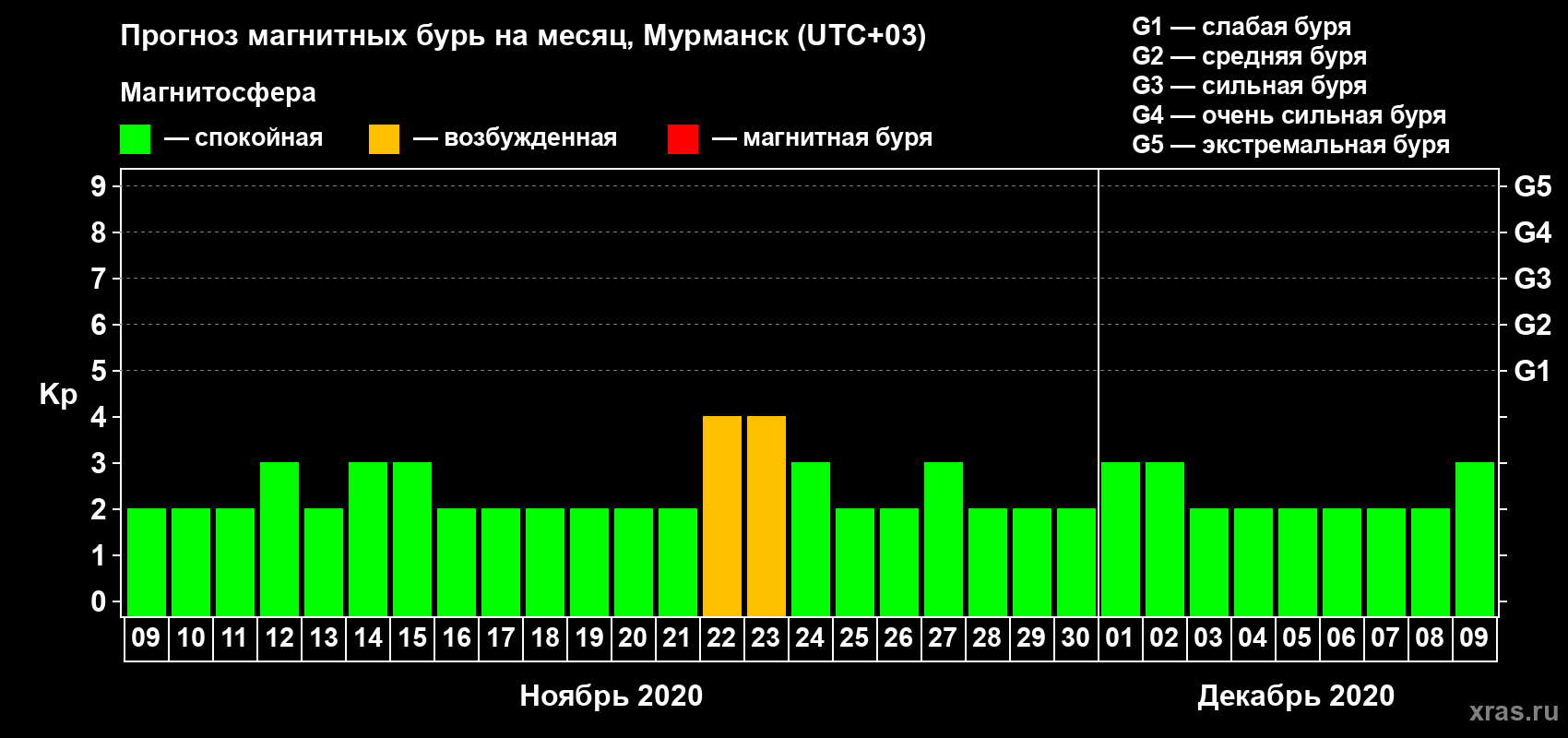 Прогноз магнитных бурь в Мурманске — 9 ноября 2020 года