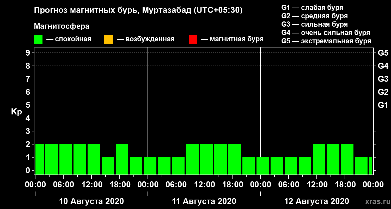 Прогноз магнитных бурь в Муртазабаде — 10 августа 2020 года