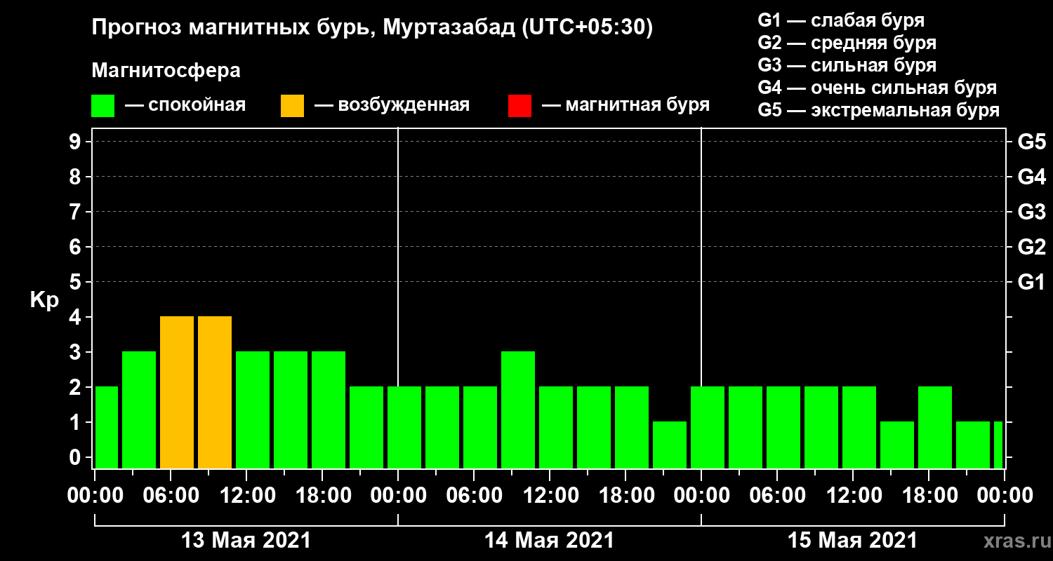 Прогноз магнитных бурь в Муртазабаде на 13 мая 2021 года