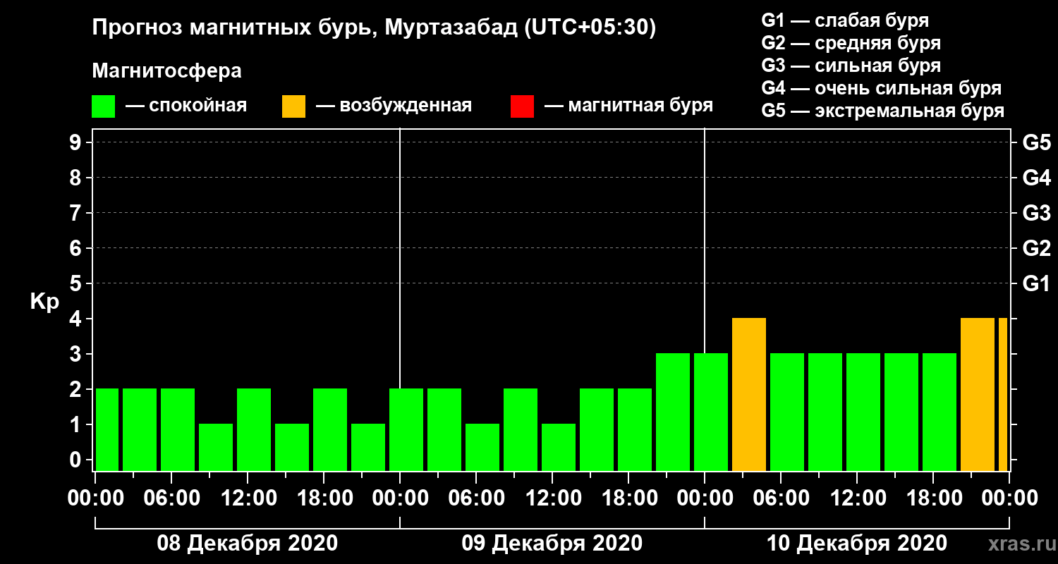 Прогноз магнитных бурь в Муртазабаде — 8 декабря 2020 года