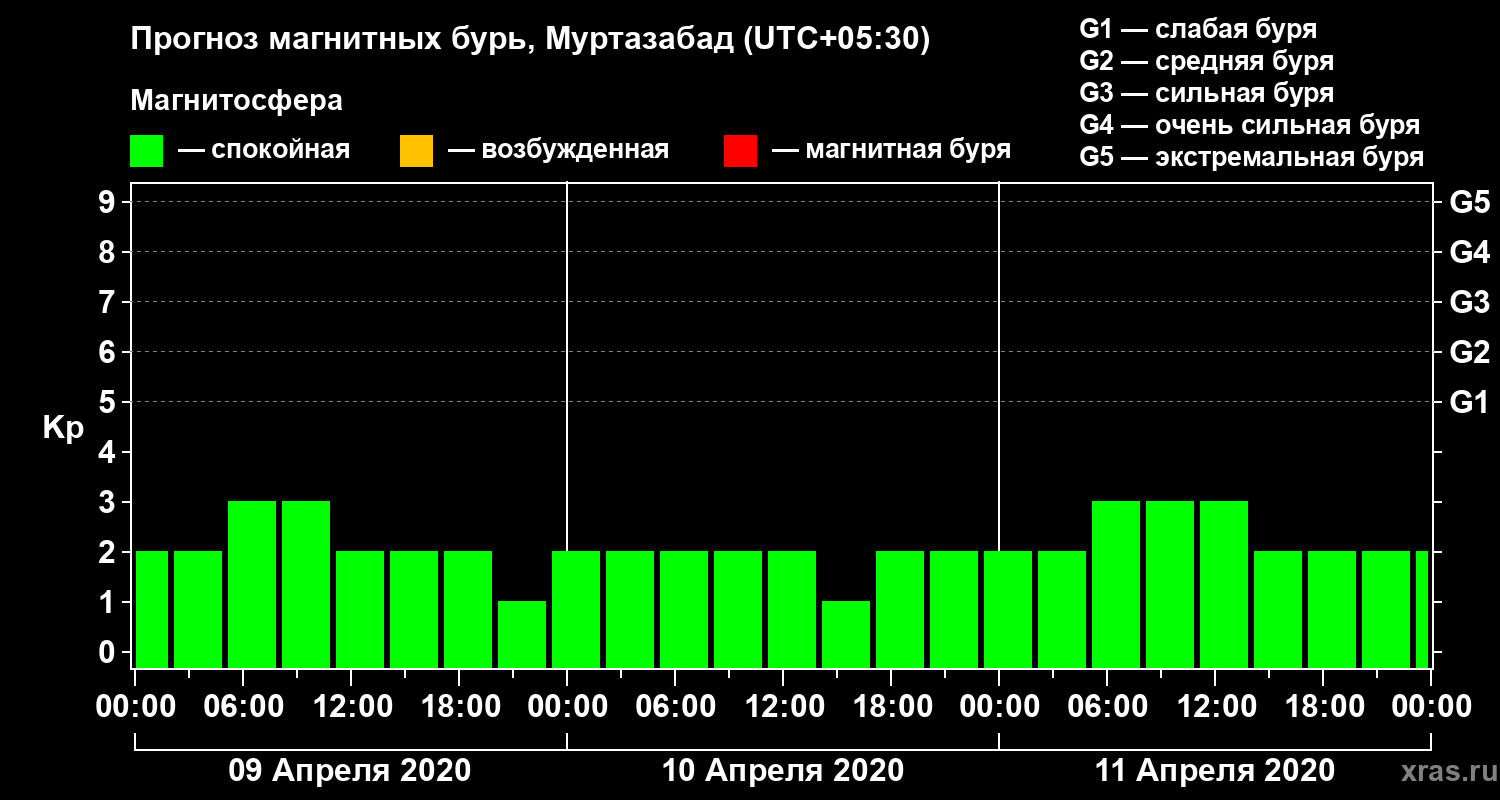 Прогноз магнитных бурь в Муртазабаде — 9 апреля 2020 года