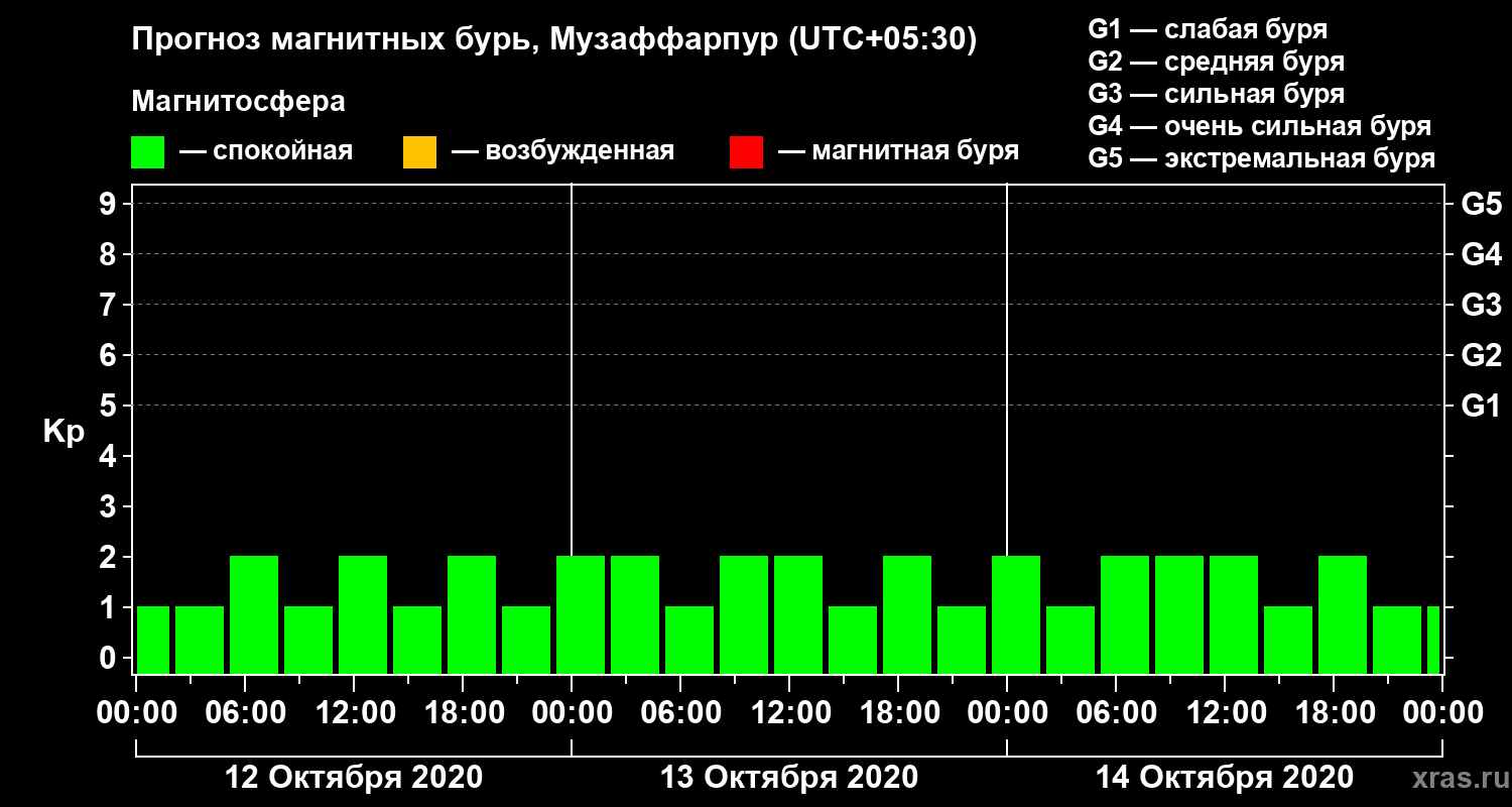 Прогноз магнитных бурь в Музаффарпуре — 12 октября 2020 года