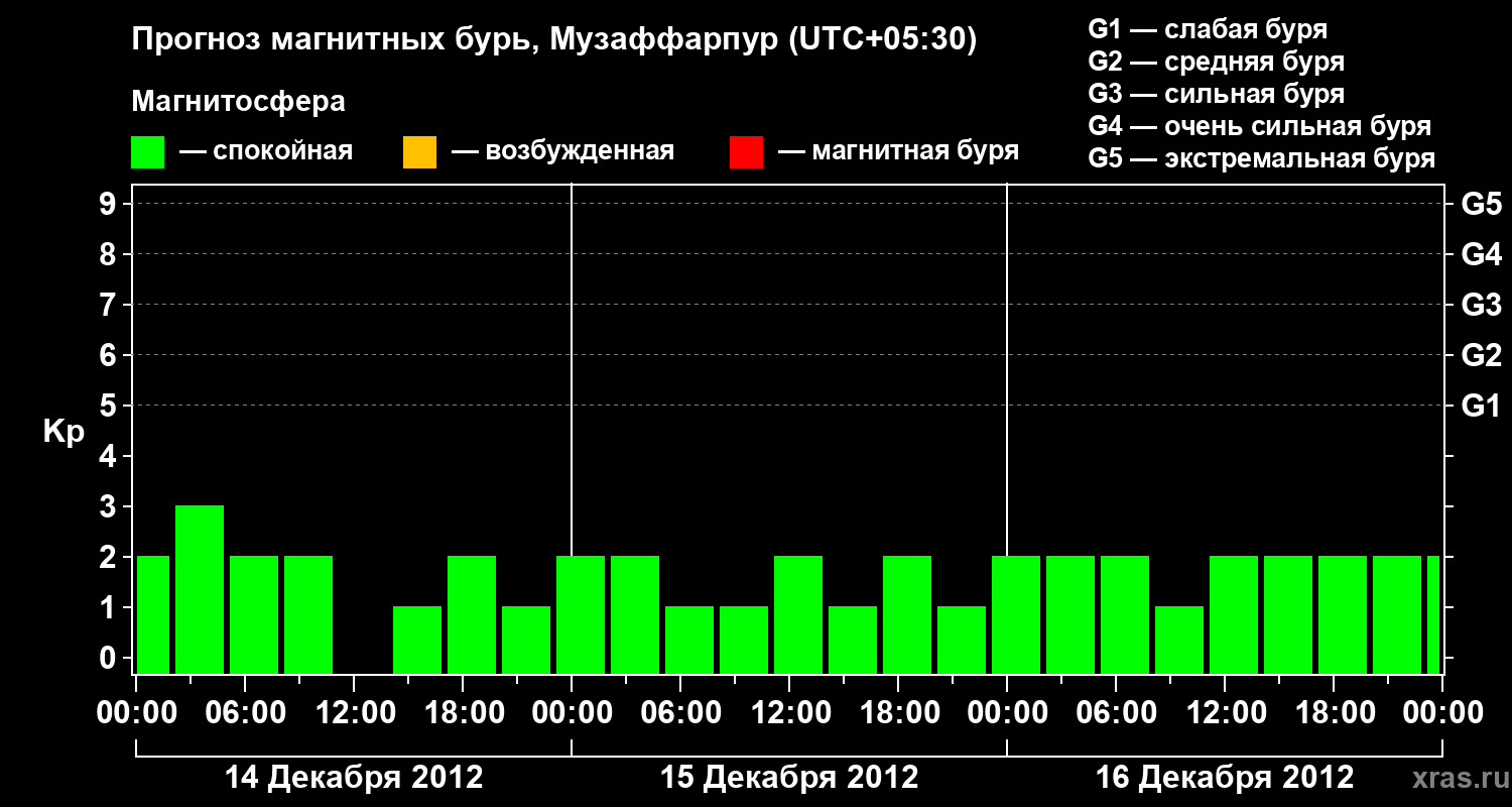 Прогноз магнитных бурь в Музаффарпуре — 14 декабря 2012 года
