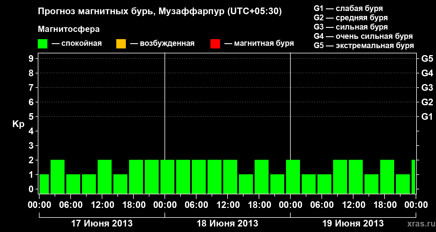 Прогноз магнитных бурь в Музаффарпуре — 17 июня 2013 года