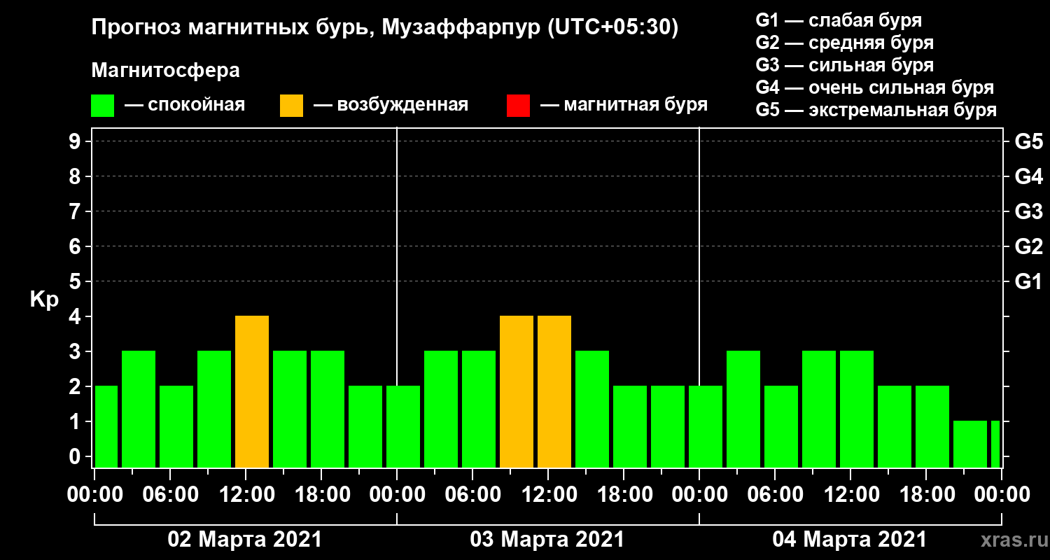 Прогноз магнитных бурь в Музаффарпуре — 2 марта 2021 года
