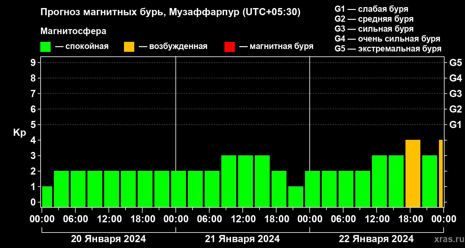 Прогноз магнитных бурь в Музаффарпуре — 20 января 2024 года