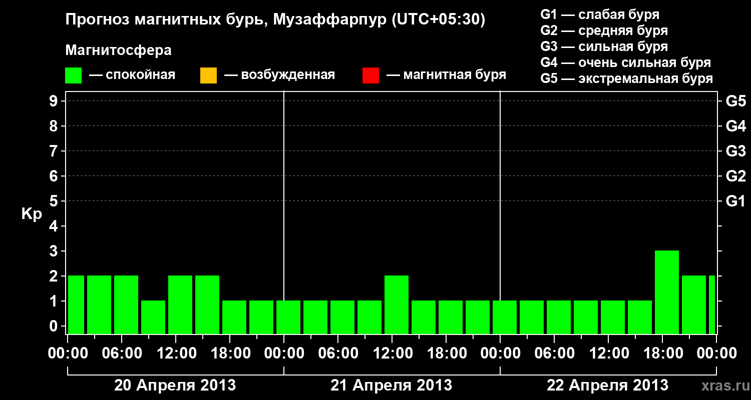 Прогноз магнитных бурь в Музаффарпуре — 20 апреля 2013 года