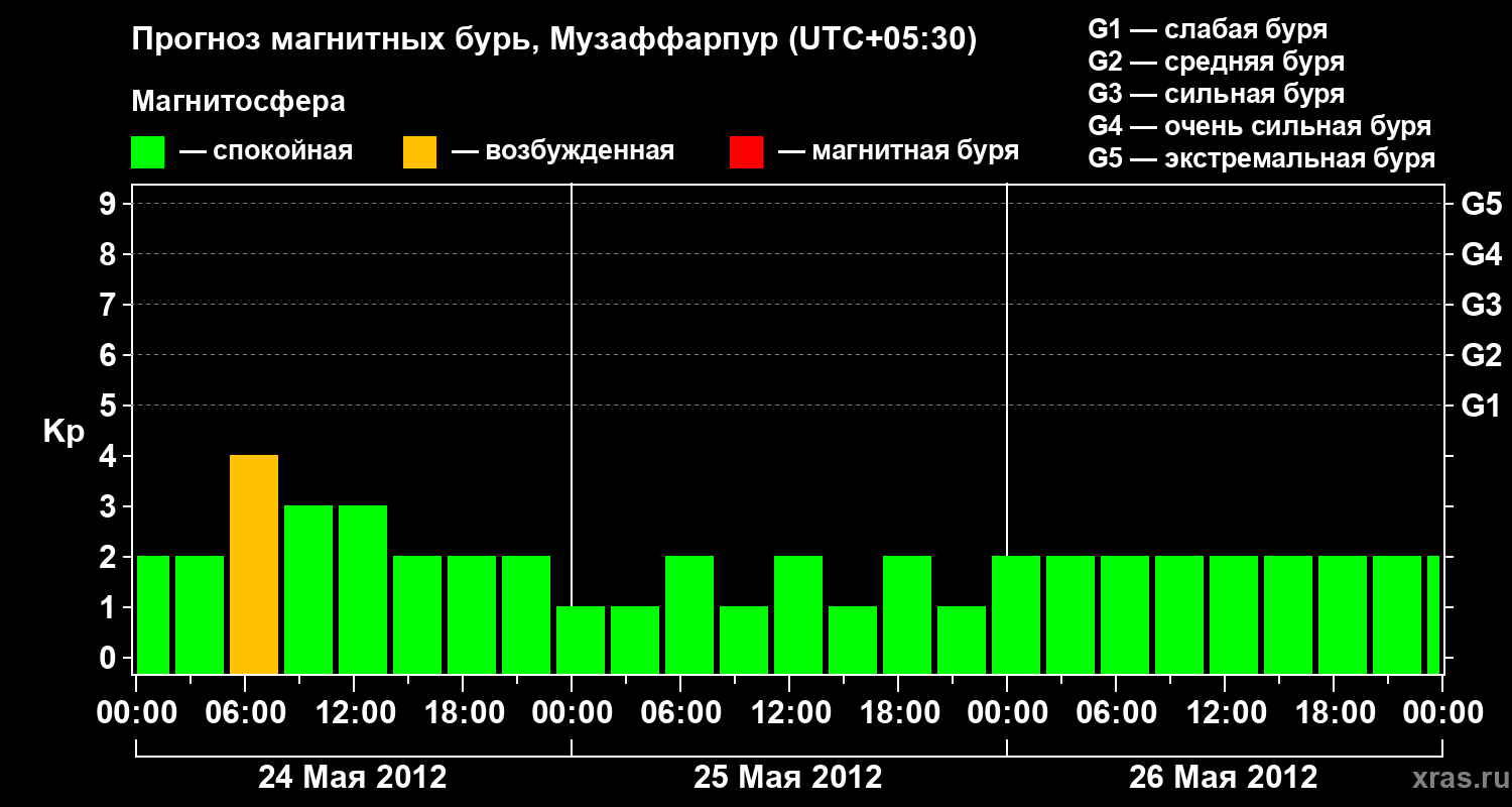Прогноз магнитных бурь в Музаффарпуре на 24 мая 2012 года