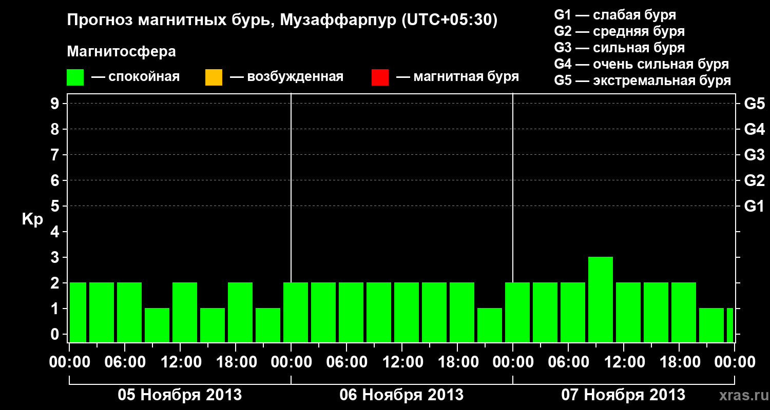 Прогноз магнитных бурь в Музаффарпуре на 5 ноября 2013 года