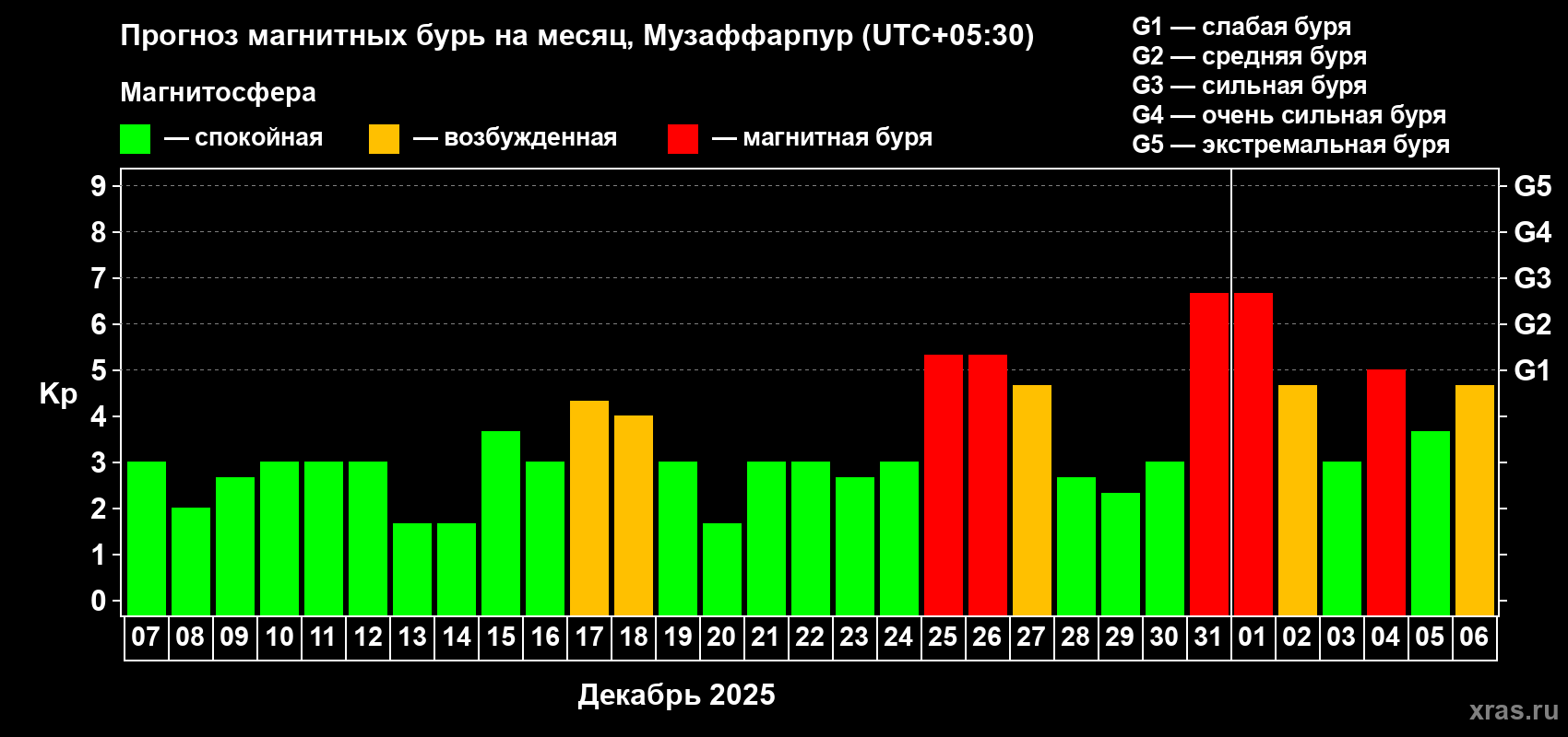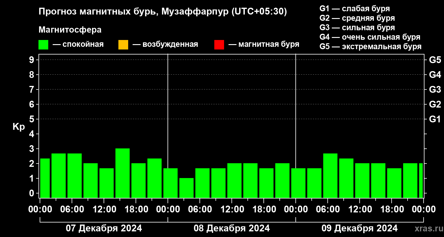 Прогноз магнитных бурь в Музаффарпуре — 7 декабря 2024 года