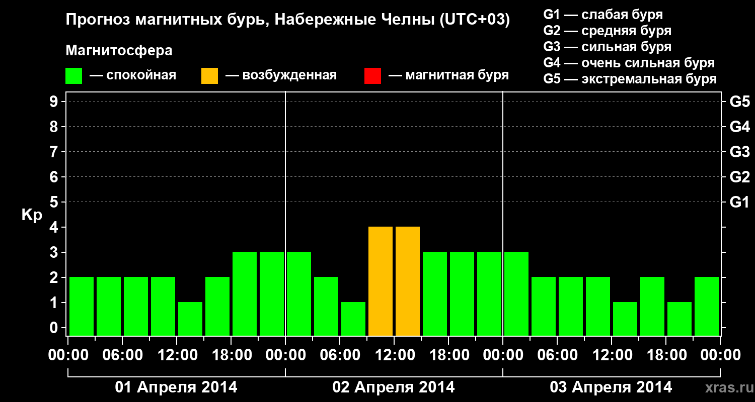 Прогноз магнитных бурь Набережных Челнах на 1 апреля 2014 года