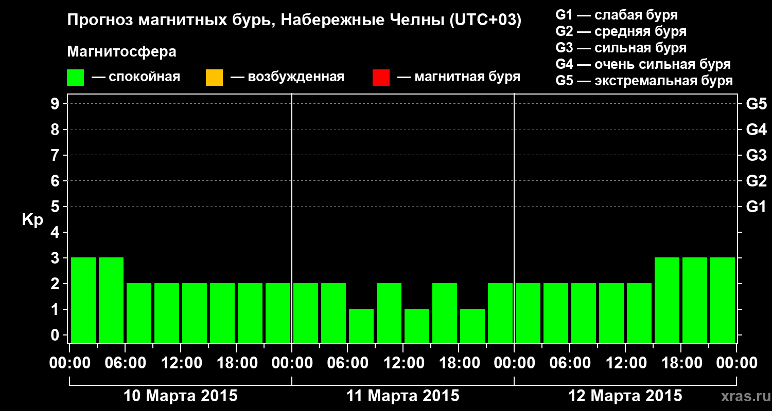 Прогноз магнитных бурь Набережных Челнах — 10 марта 2015 года