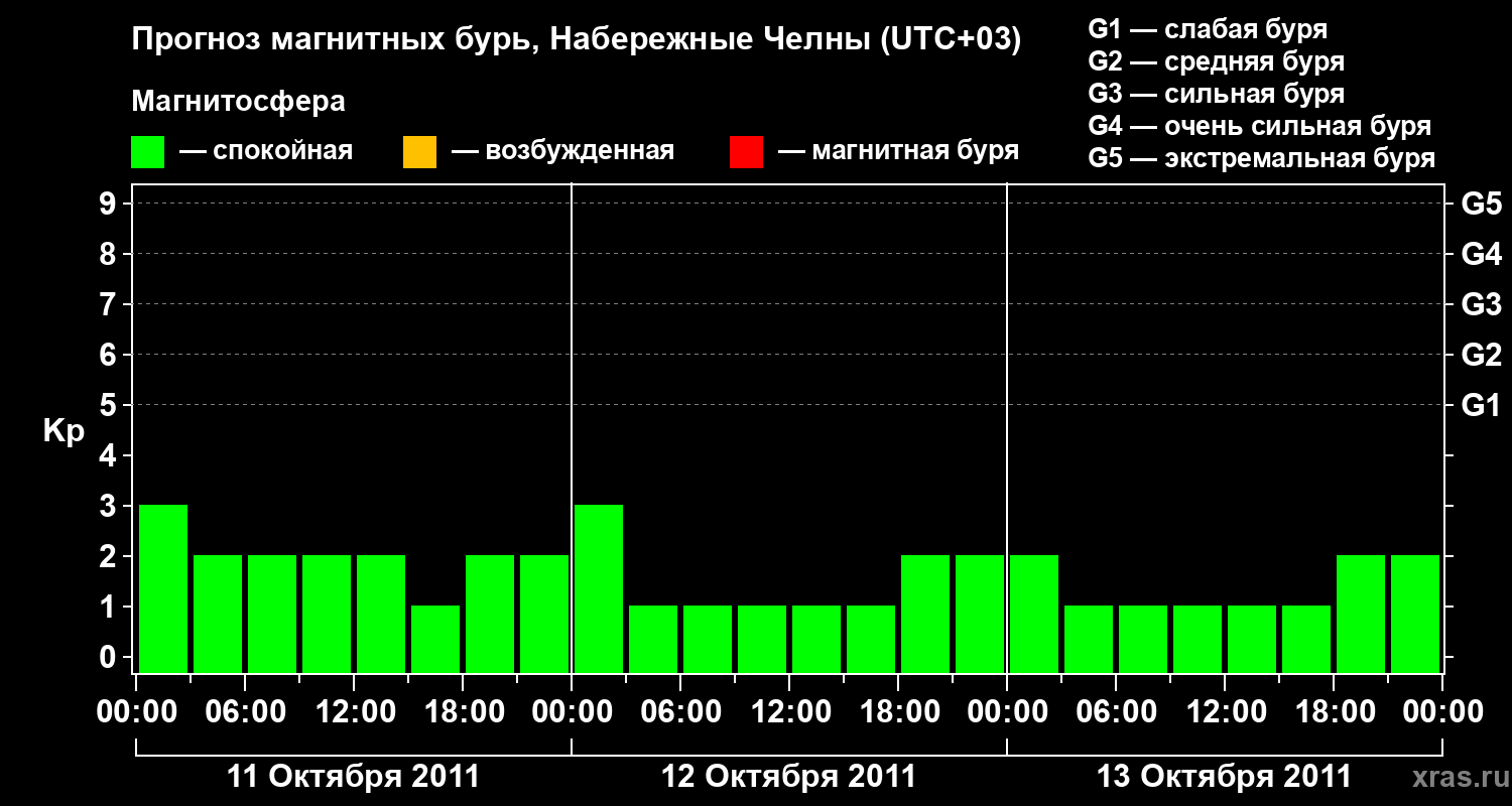 Прогноз магнитных бурь Набережных Челнах — 11 октября 2011 года