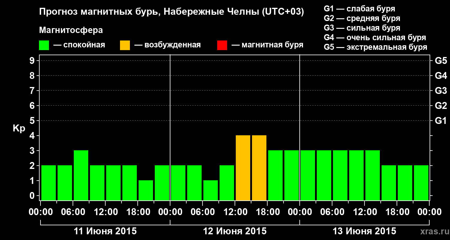 Прогноз магнитных бурь Набережных Челнах — 11 июня 2015 года