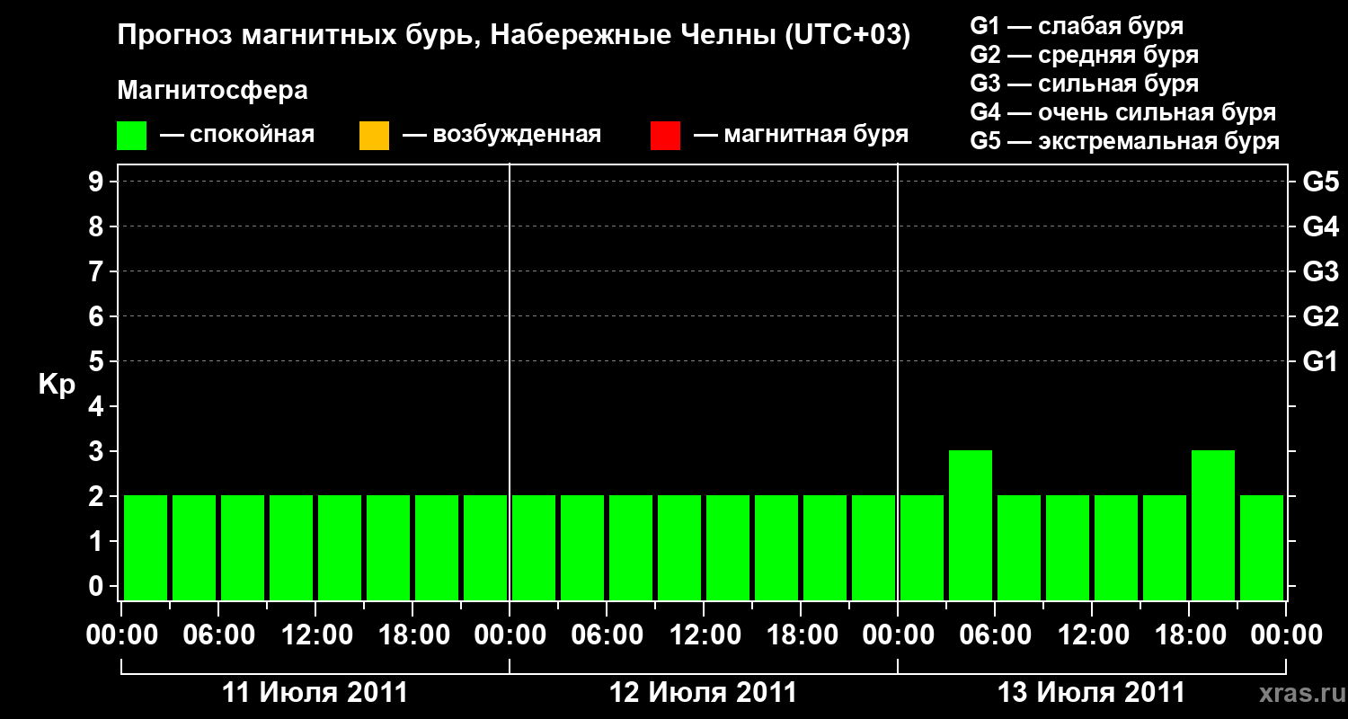 Прогноз магнитных бурь Набережных Челнах на 11 июля 2011 года