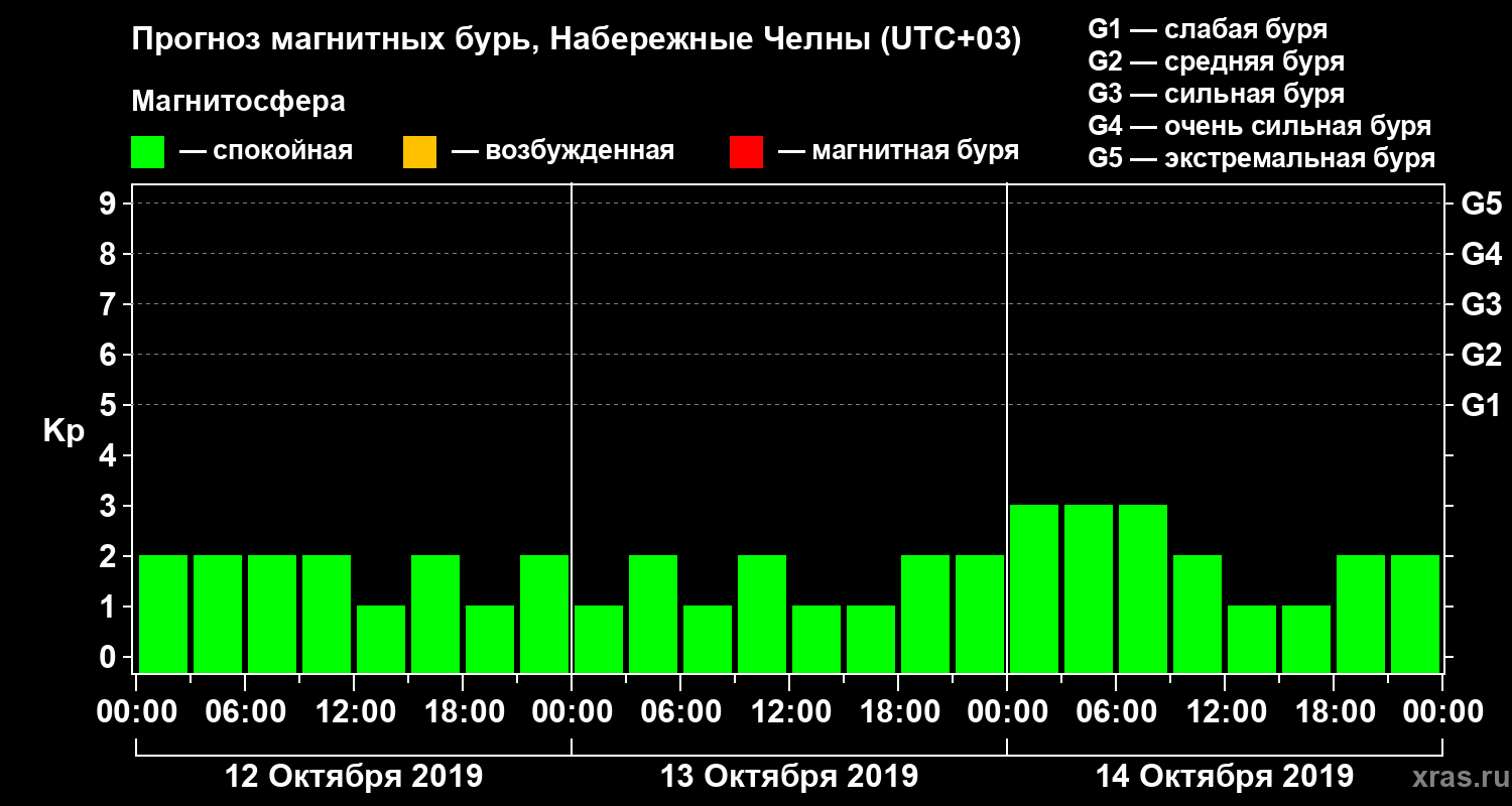 Прогноз магнитных бурь Набережных Челнах — 12 октября 2019 года
