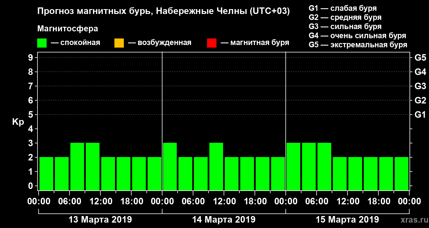 Прогноз магнитных бурь Набережных Челнах на 13 марта 2019 года