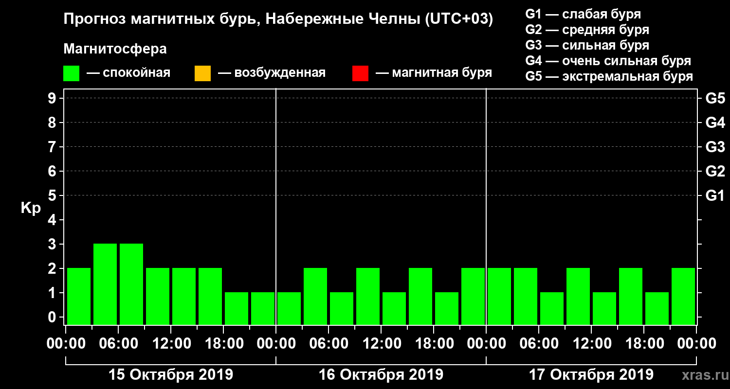 Прогноз магнитных бурь Набережных Челнах на 15 октября 2019 года