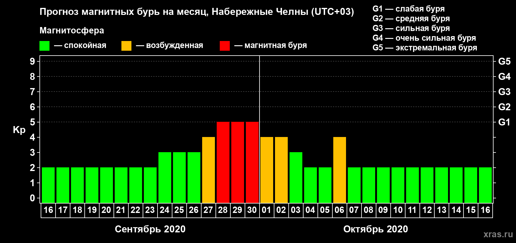 Прогноз магнитных бурь Набережных Челнах — 16 сентября 2020 года