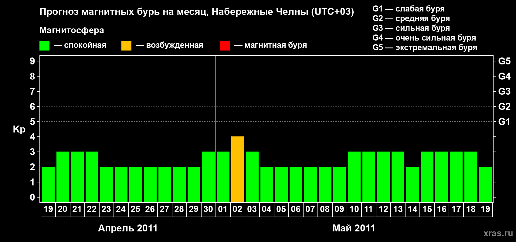 Прогноз магнитных бурь Набережных Челнах на 19 апреля 2011 года