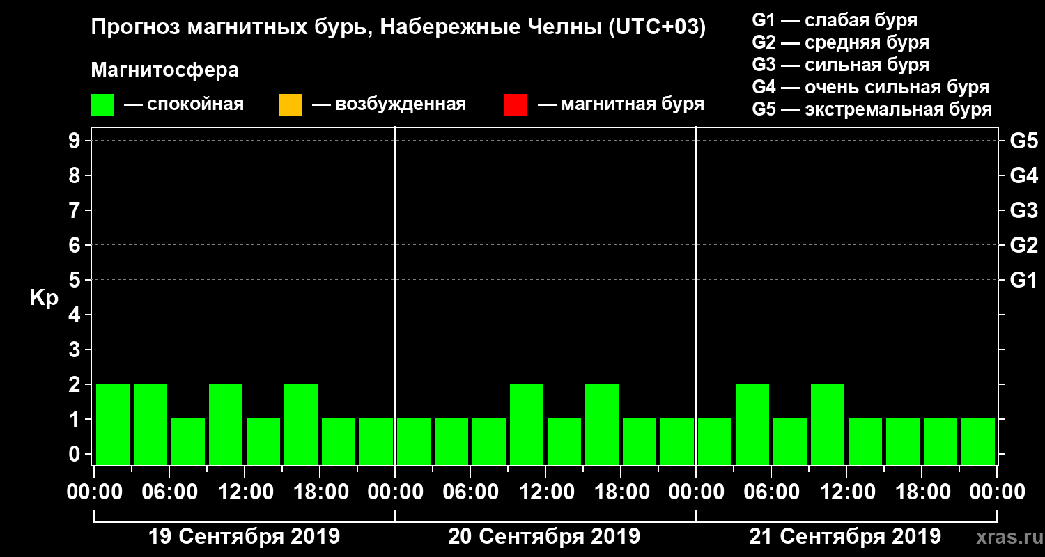 Прогноз магнитных бурь Набережных Челнах на 19 сентября 2019 года