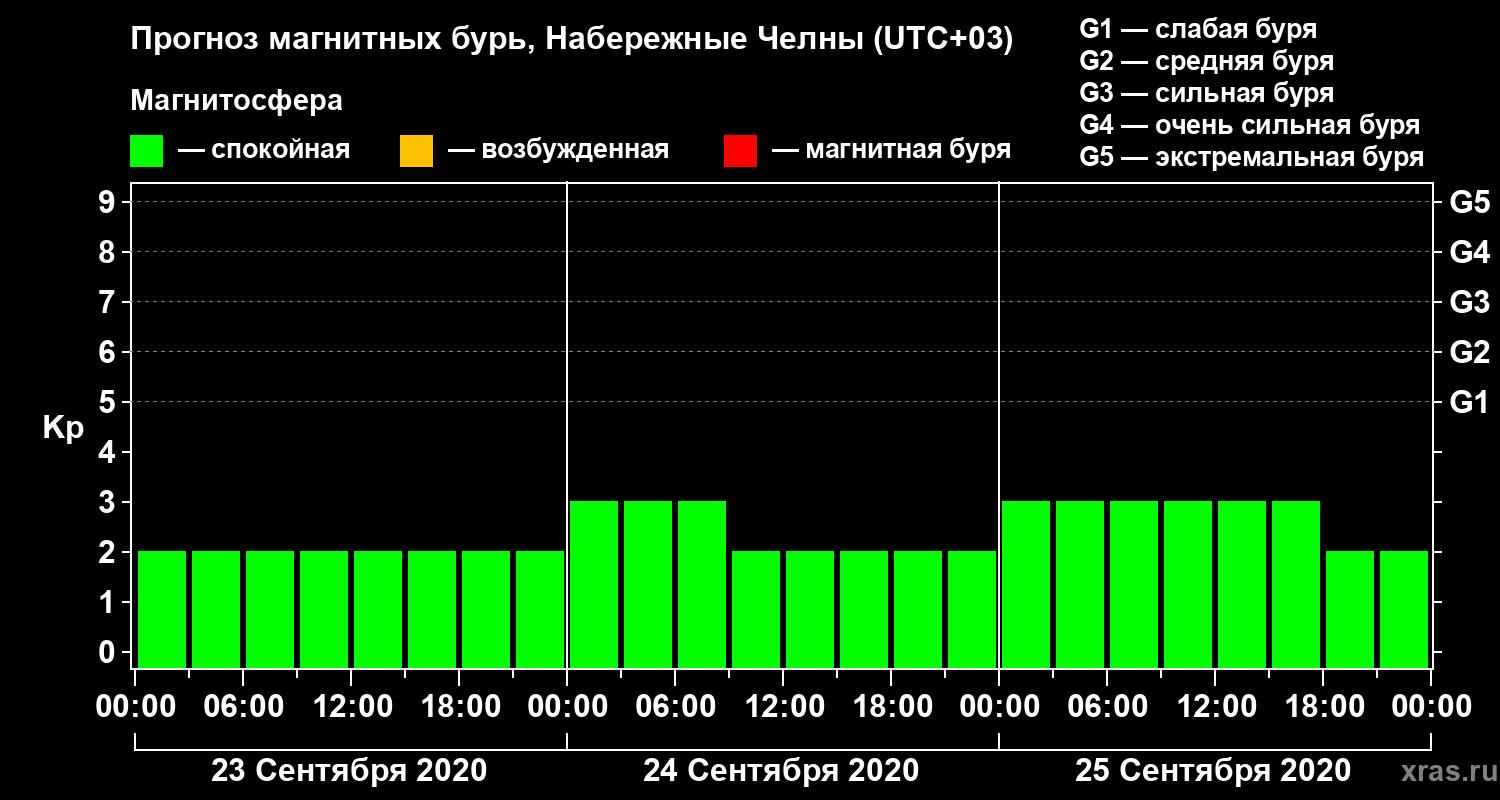 Прогноз магнитных бурь Набережных Челнах на 23 сентября 2020 года