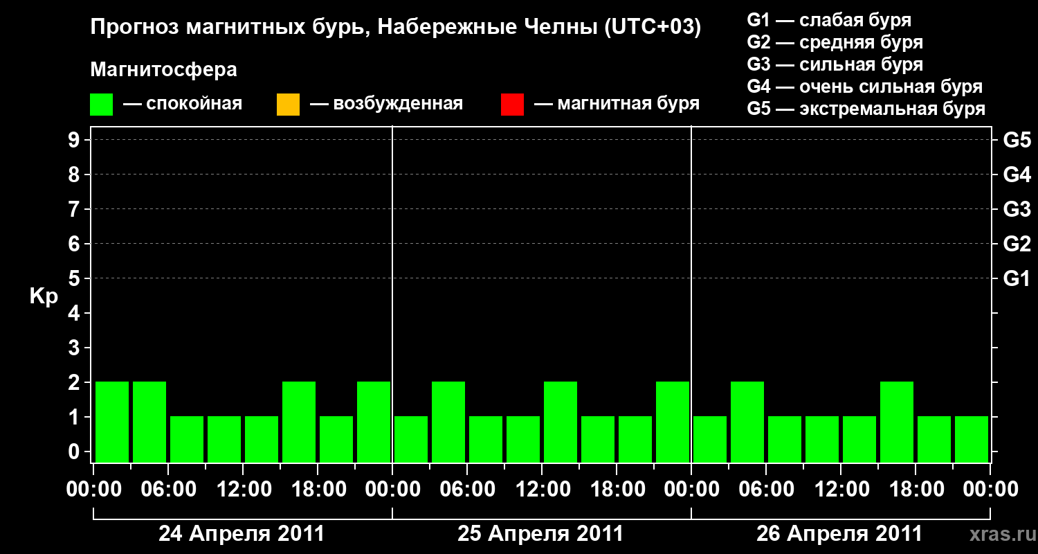 Прогноз магнитных бурь Набережных Челнах на 24 апреля 2011 года