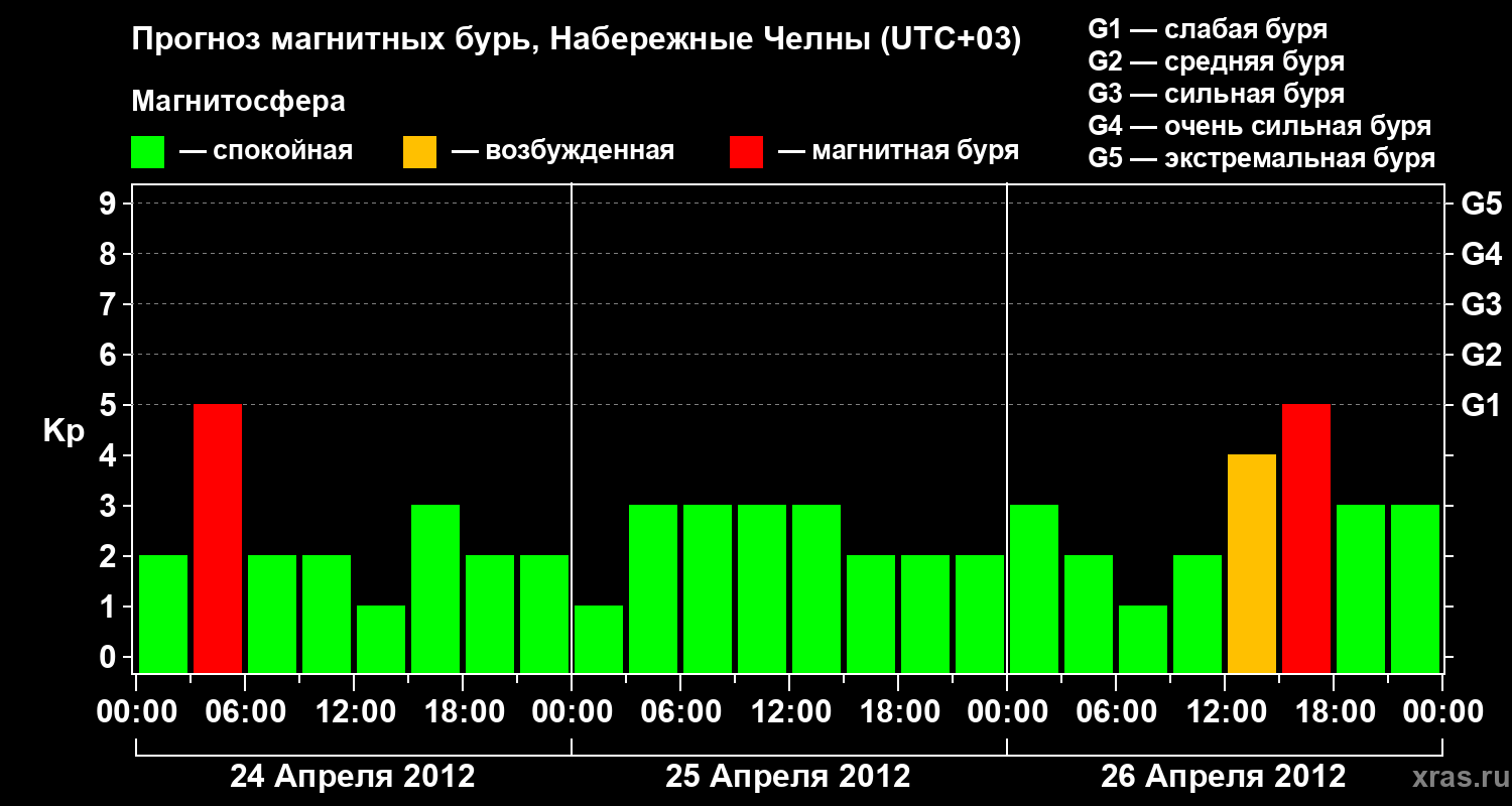 Прогноз магнитных бурь Набережных Челнах — 24 апреля 2012 года