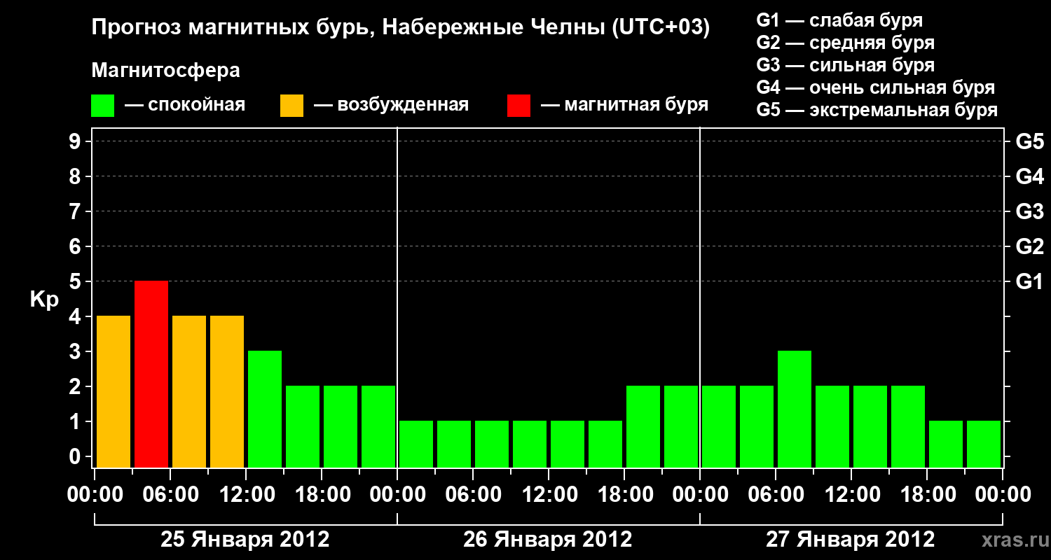 Прогноз магнитных бурь Набережных Челнах — 25 января 2012 года