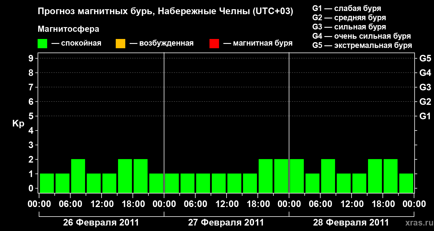 Прогноз магнитных бурь Набережных Челнах на 26 февраля 2011 года