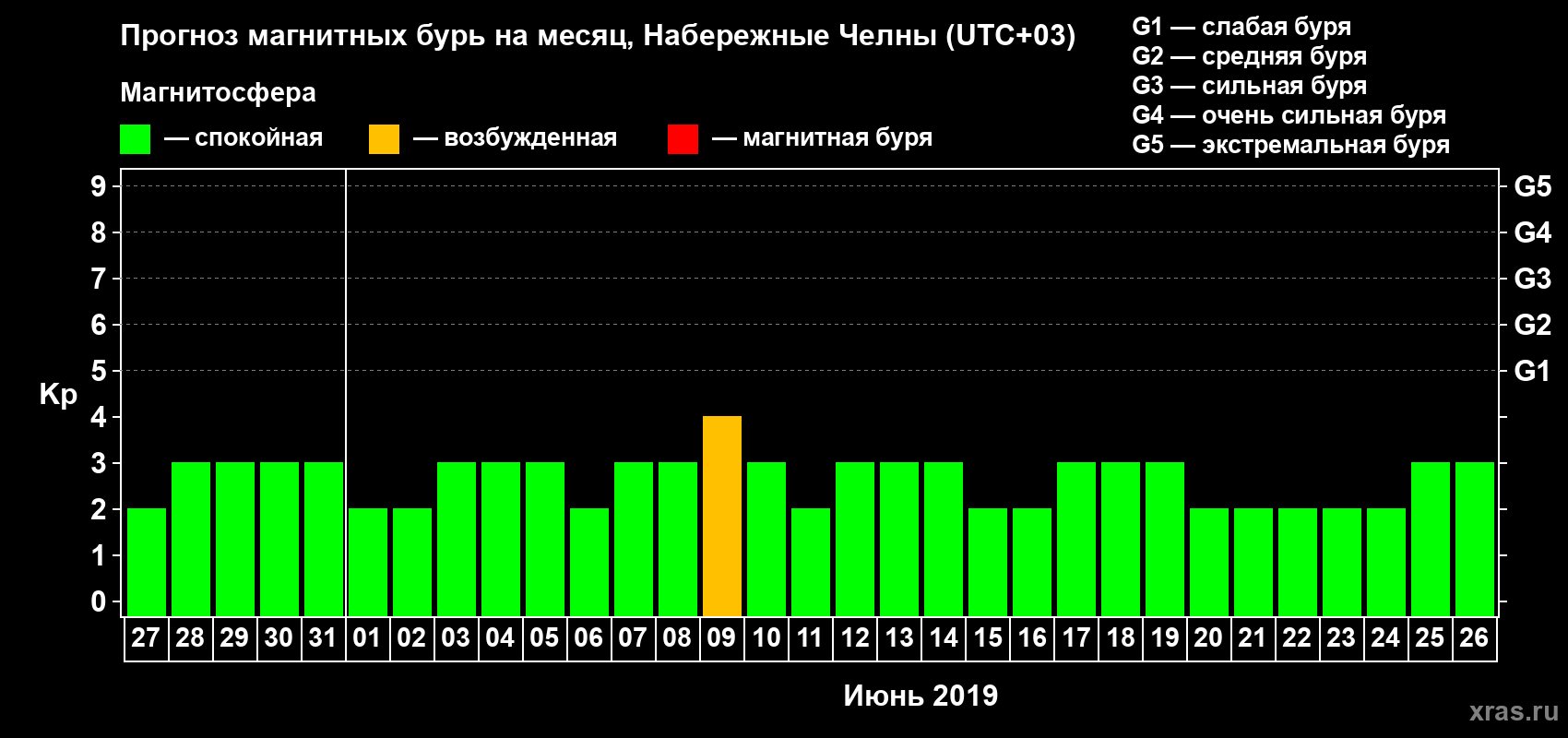 Прогноз магнитных бурь Набережных Челнах на 27 мая 2019 года