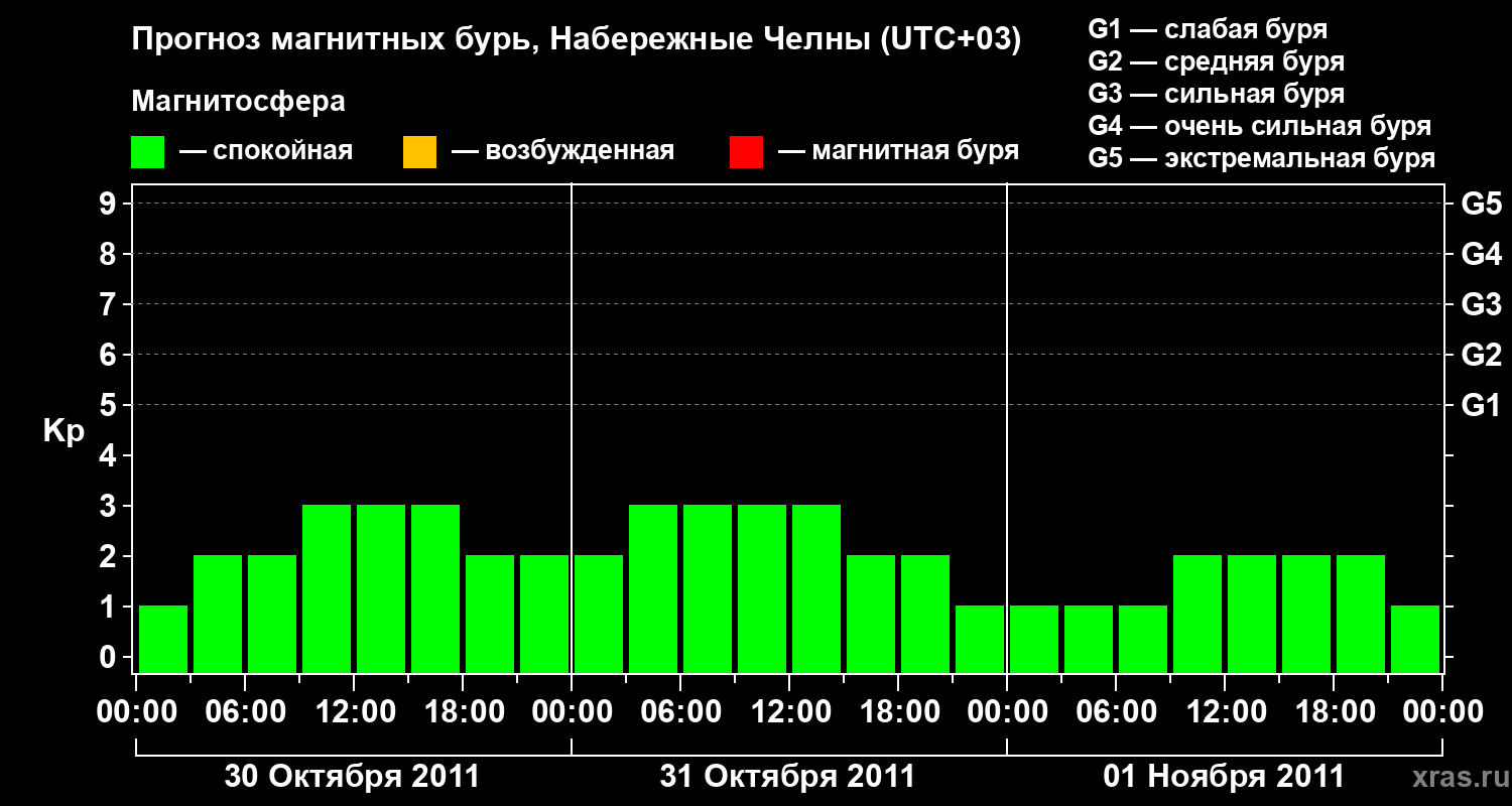 Прогноз магнитных бурь Набережных Челнах — 30 октября 2011 года