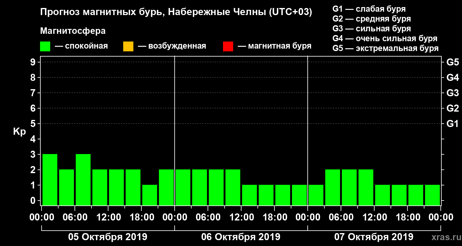 Прогноз магнитных бурь Набережных Челнах — 5 октября 2019 года