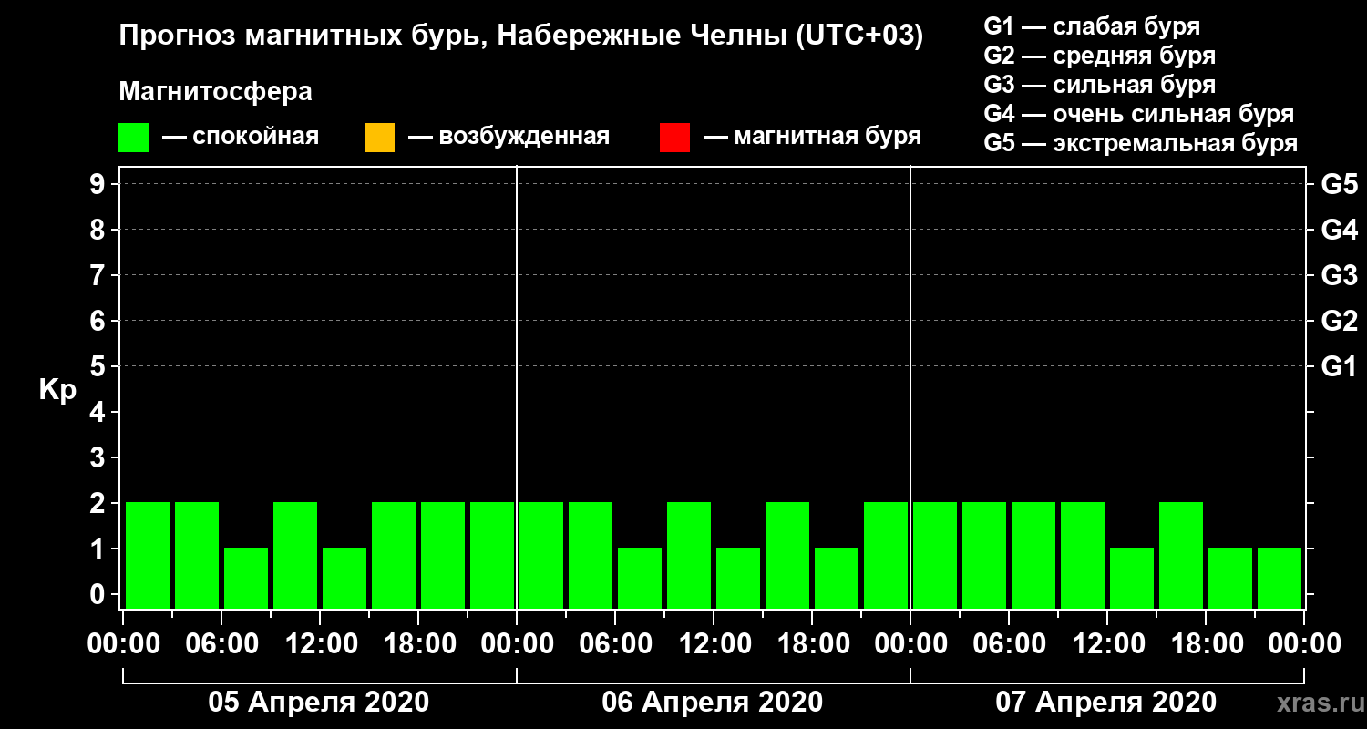 Прогноз магнитных бурь Набережных Челнах — 5 апреля 2020 года