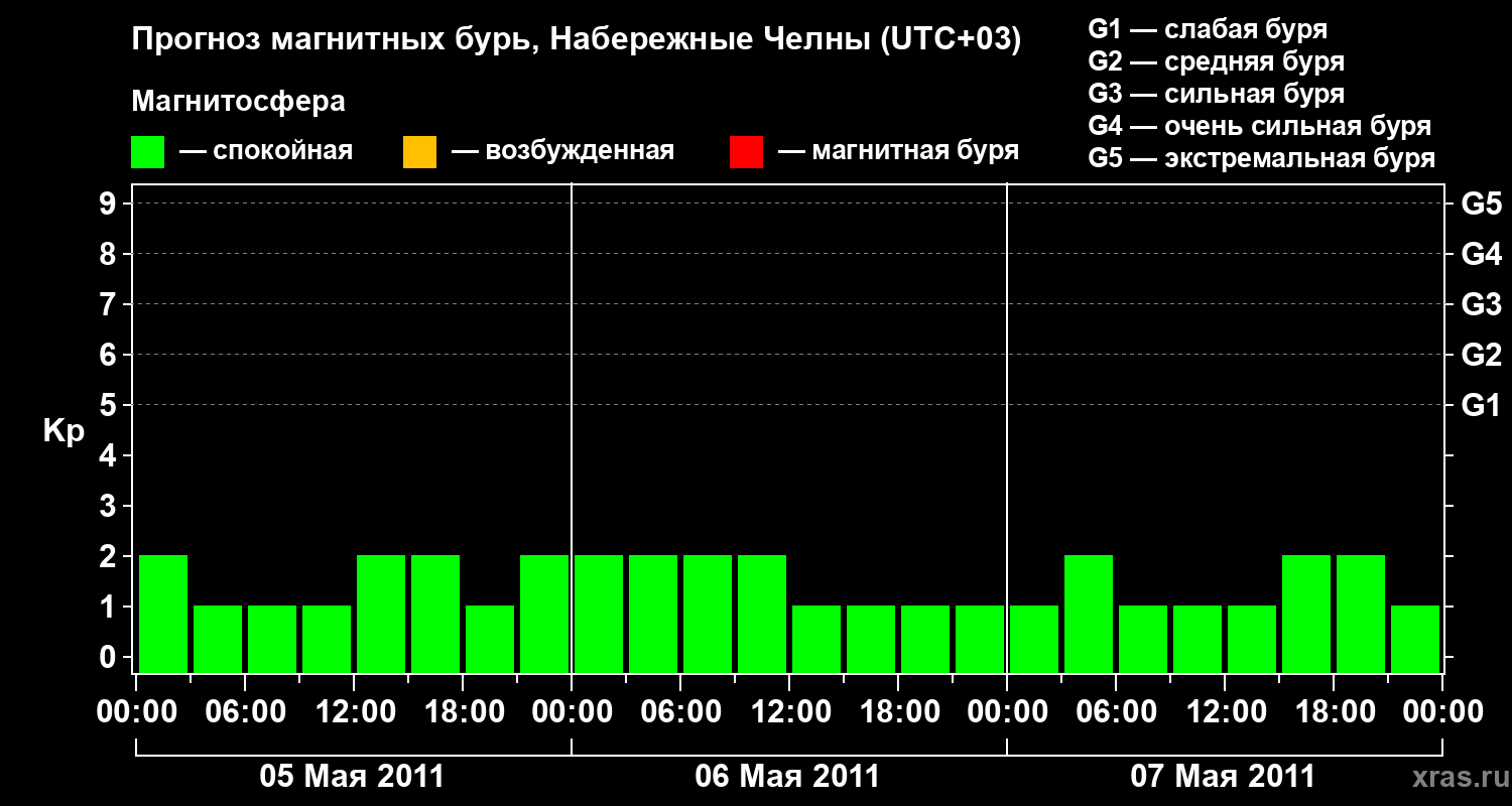 Прогноз магнитных бурь Набережных Челнах — 5 мая 2011 года