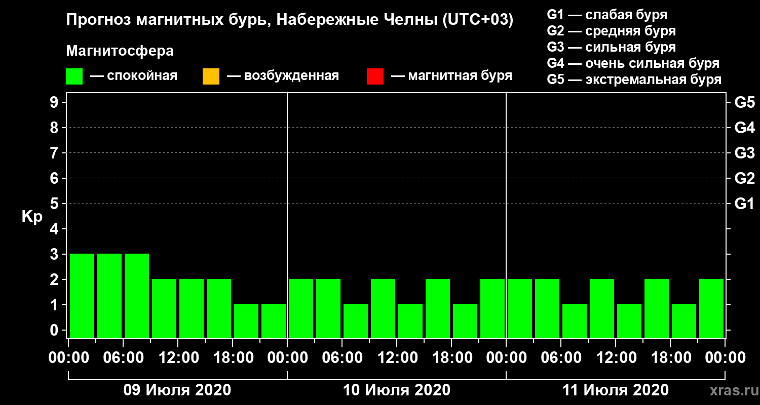 Прогноз магнитных бурь Набережных Челнах — 9 июля 2020 года