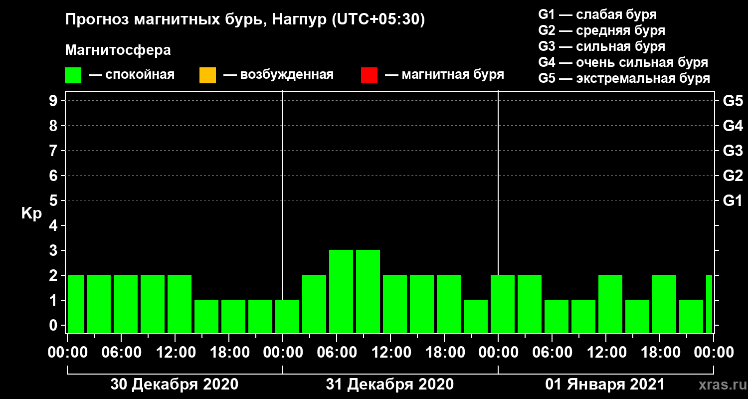 Прогноз магнитных бурь в Нагпуре — 30 декабря 2020 года