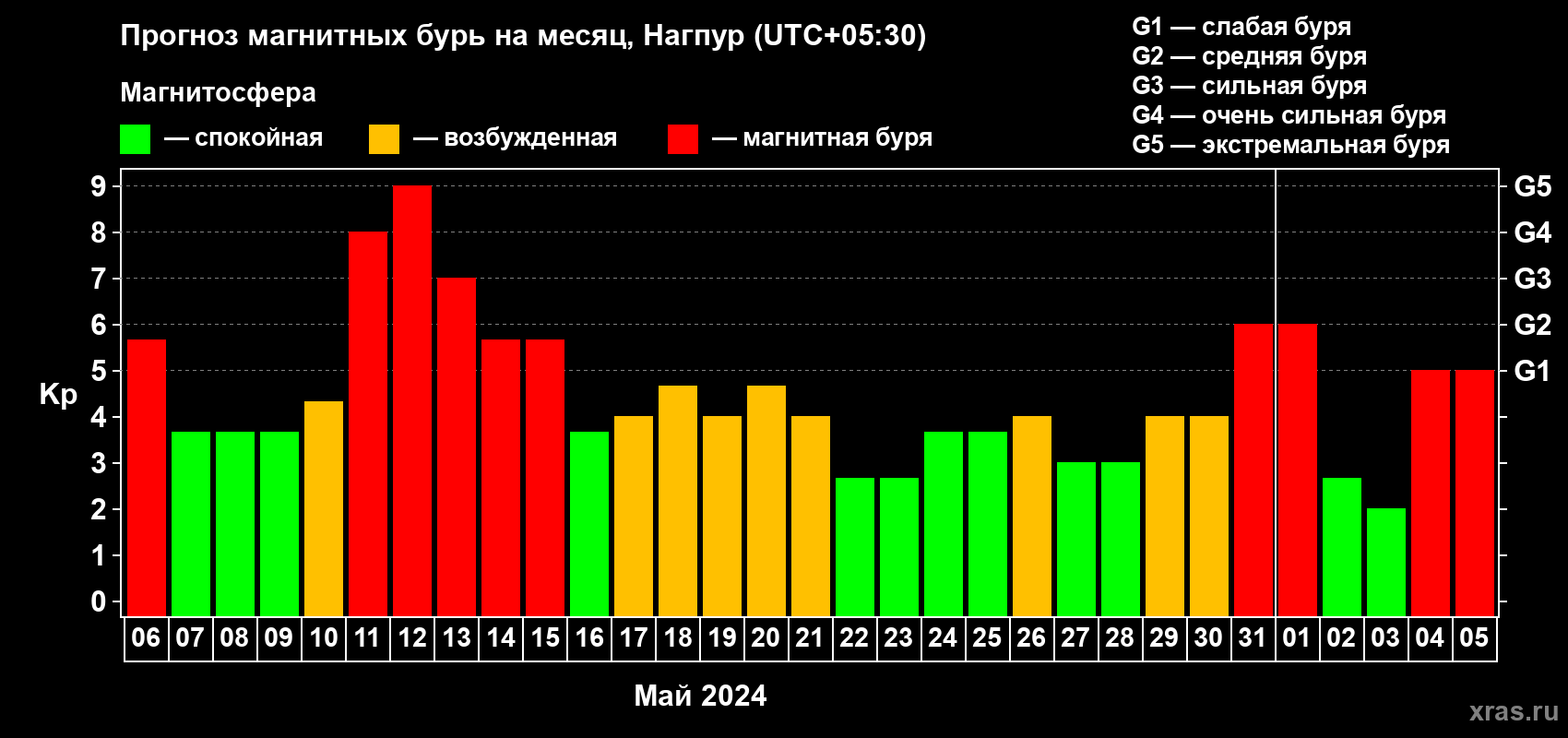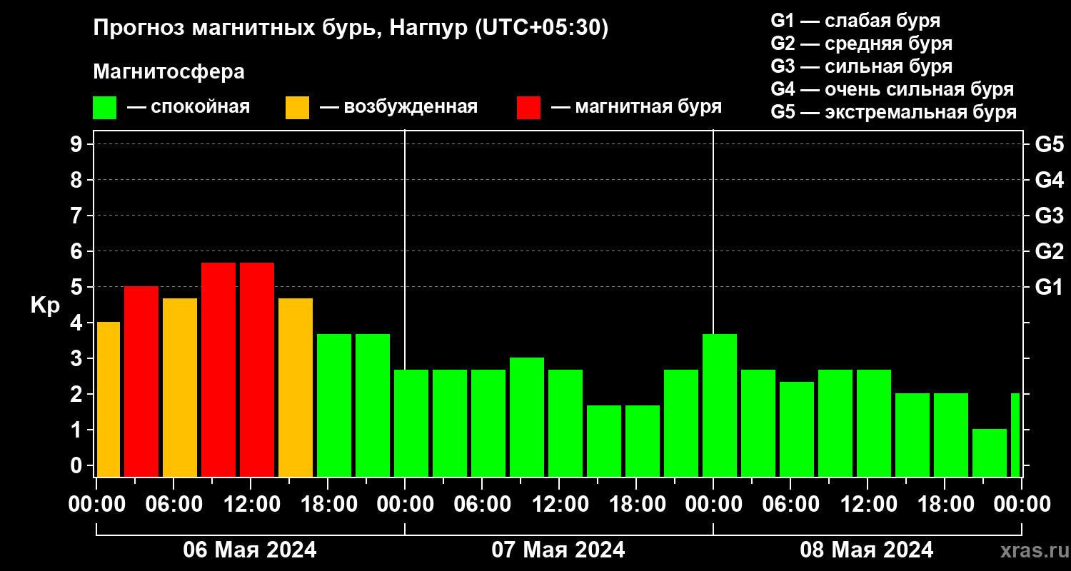 Прогноз магнитных бурь в Нагпуре — 6 мая 2024 года