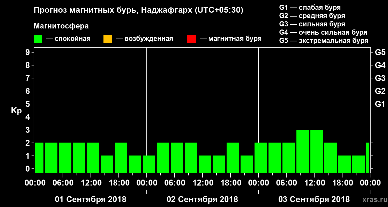 Прогноз магнитных бурь в Наджафгархе на 1 сентября 2018 года