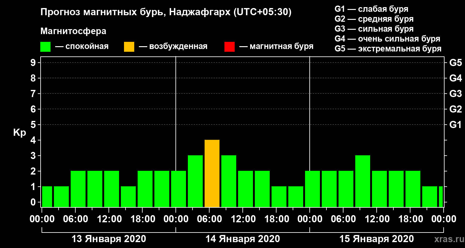 Прогноз магнитных бурь в Наджафгархе — 13 января 2020 года