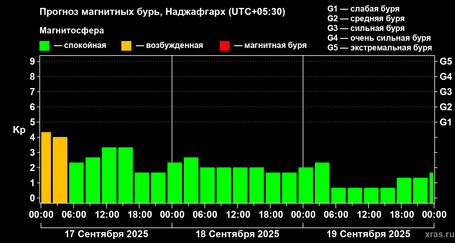 Прогноз магнитных бурь в Наджафгархе — 17 сентября 2025 года