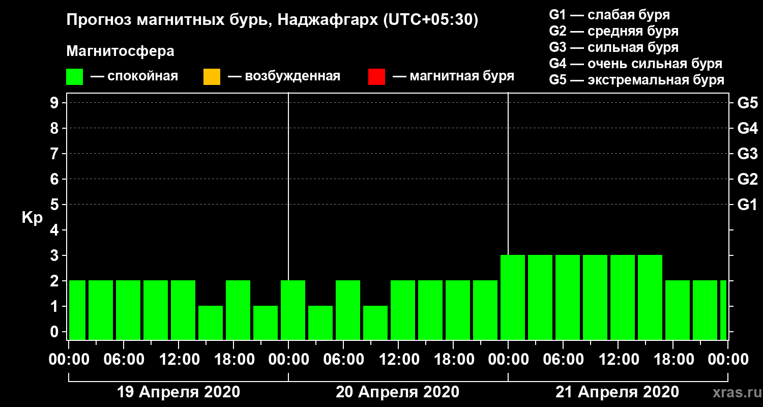 Прогноз магнитных бурь в Наджафгархе — 19 апреля 2020 года