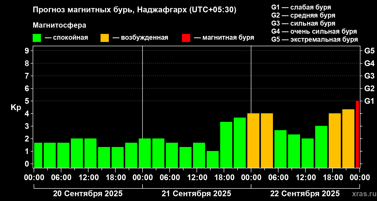 Прогноз магнитных бурь в Наджафгархе — 20 сентября 2025 года