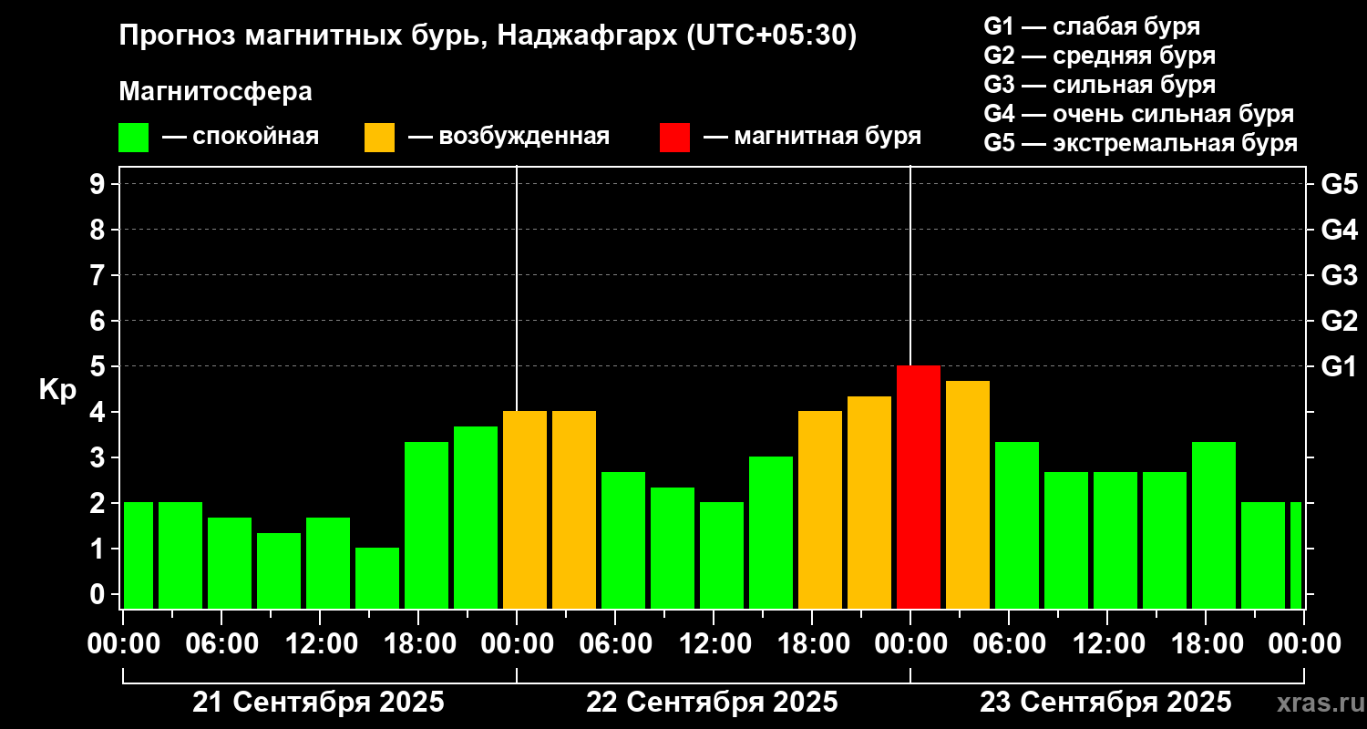 Прогноз магнитных бурь в Наджафгархе — 21 сентября 2025 года